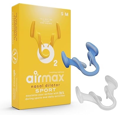 Air Max Unisex Sport Nasal Dilators Trial Pack - Easy, Safe, and Comfortable Breathing Aid - Improves Airflow - Blue, Transparent - 1 Small, 1 Medium