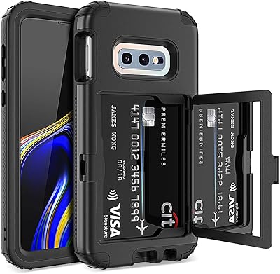 WeLoveCase Galaxy S10e Wallet Case with Built in Screen Protector, Defender Cover, Card Holder, Hidden Mirror, 3 Layer Shockproof Heavy Duty Protection, Black