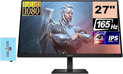 HP OMEN HDR Monitor 780F9AA#ABA Bundle with Docztorm Dock, 27 FHD IPS 1920x1080 165Hz Display, 2 HDMI 2.0, 1 DisplayPort 1.4, VESA Mount 100x100 mm, Ideal for Gaming, Black 2025 Latest Model